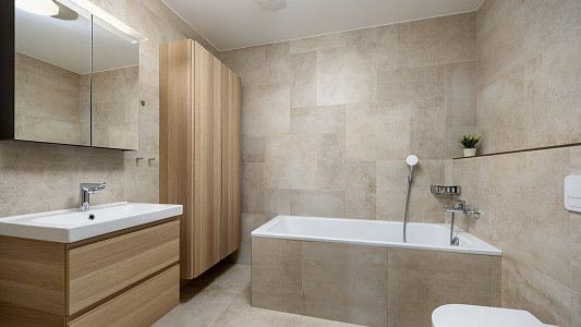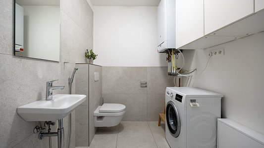 • kúpeľňa s vaňou a toaletou + samostatná toaleta s pračkou