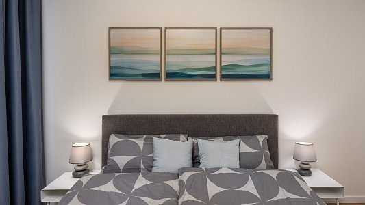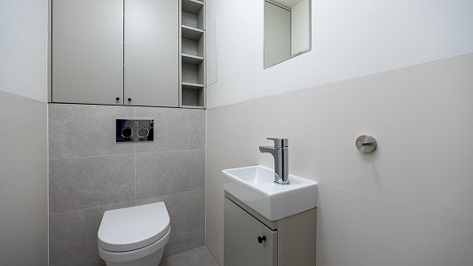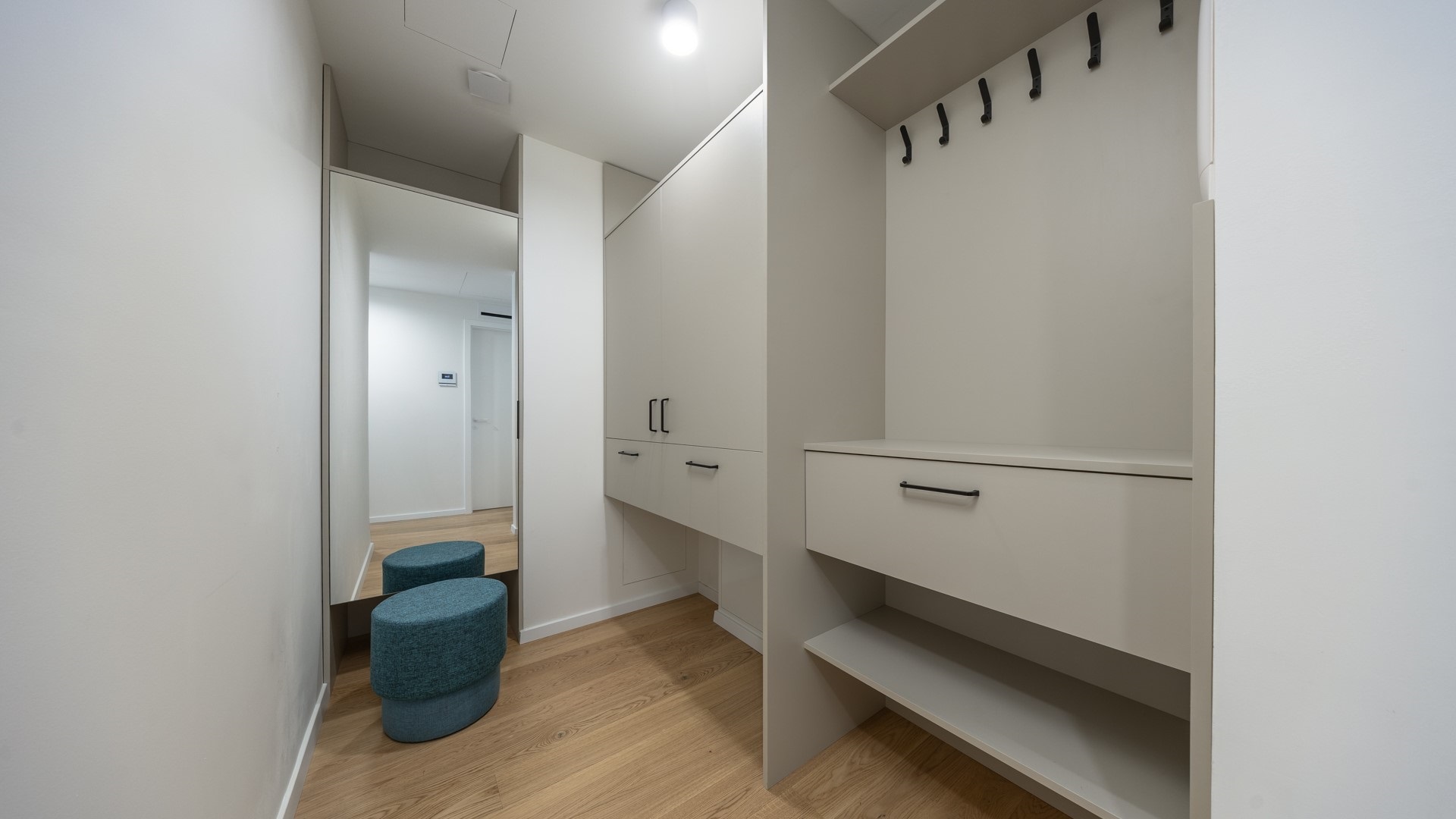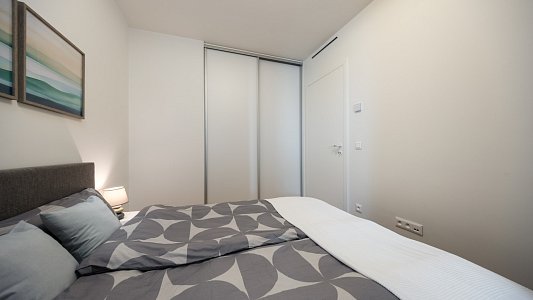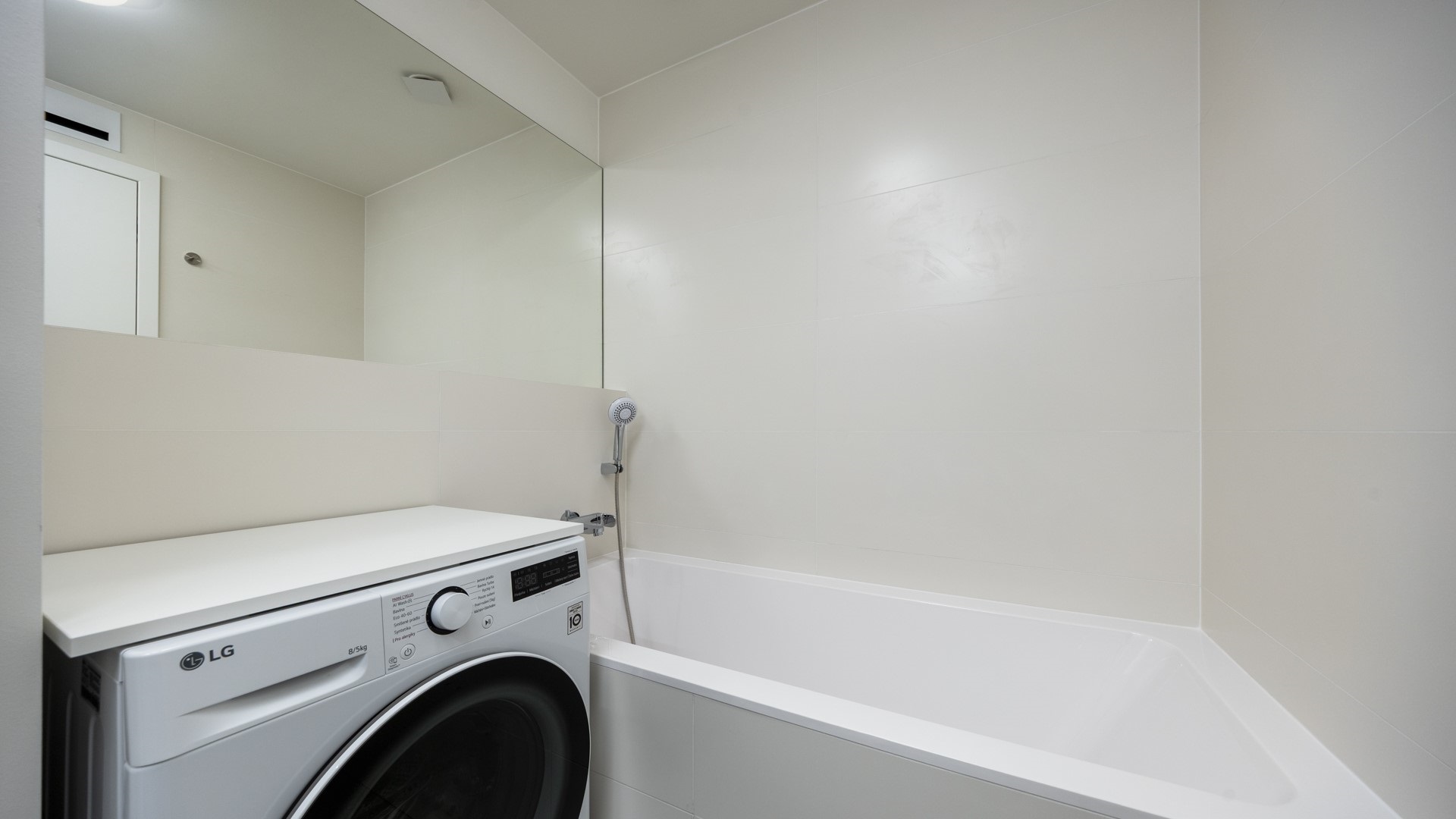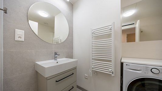 • v kúpeľni je práčka so sušičkou, v chodbe a spálni dostatok úložných priestorov (vstavané skrine)